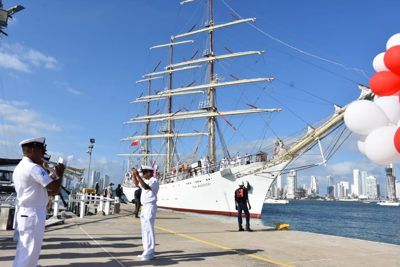 Uroczystość powitania miała miejsce w doku Edurbe, z udziałem Ambasadora RP w Kolumbii, zastępcy dyrektora Akademii Marynarki Wojennej oraz przedstawicieli Ministerstwa Gospodarki Morskiej RP. Orkiestra Akademii wykonała hymn Polski oraz typowymi kolumbijskimi rytmami powitała przybywającą jednostkę.
