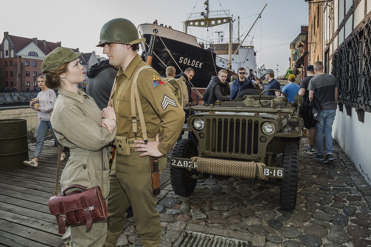 Ze względu na przypadającą w tym roku 75. rocznicę inwazji Aliantów w Normandii, Ołowianka na jedną noc zamieniła się w brytyjski port, w którym alianccy żołnierze przygotowywali się do wyzwolenia Francji spod niemieckiej okupacji. Statek-muzeum Sołdek został przemianowany na aliancki transportowiec, a nabrzeże zaroiło się od żołnierzy i sprzętu amerykańskiej 2 Dywizji Pancernej. Pod muzeum pojawiły się m.in. jeepy i ciężarówki Dodge z czasów II Wojny Światowej, a rekonstruktorzy z grupy Hell on Wheels w mundurach US Army opowiadali gościom o czasach i życiu ludzi, których sylwetki odtwarzają. Mgła nad Motławą i zainscenizowane odgłosy bombardowań dodały całej imprezie niezwykłego klimatu.
