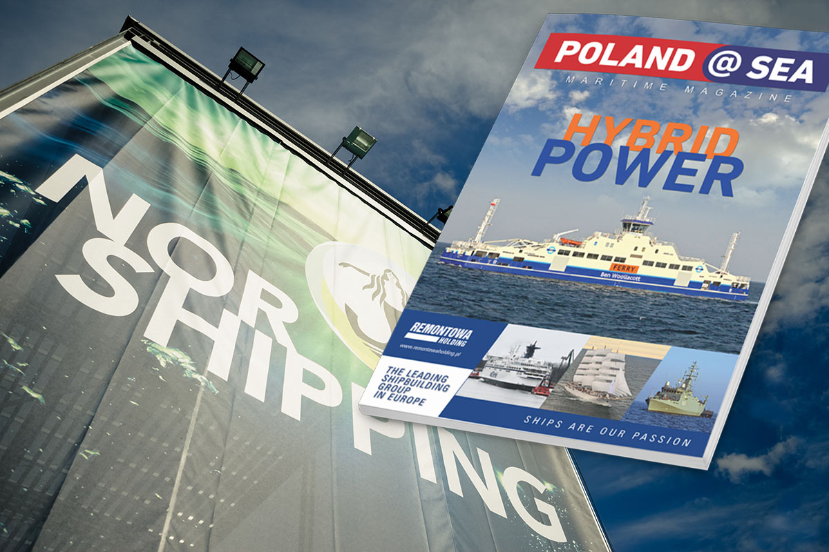 U dołu: Magazyn POLAND@SEA kolportowany na targach Nor-Shipping 2019: