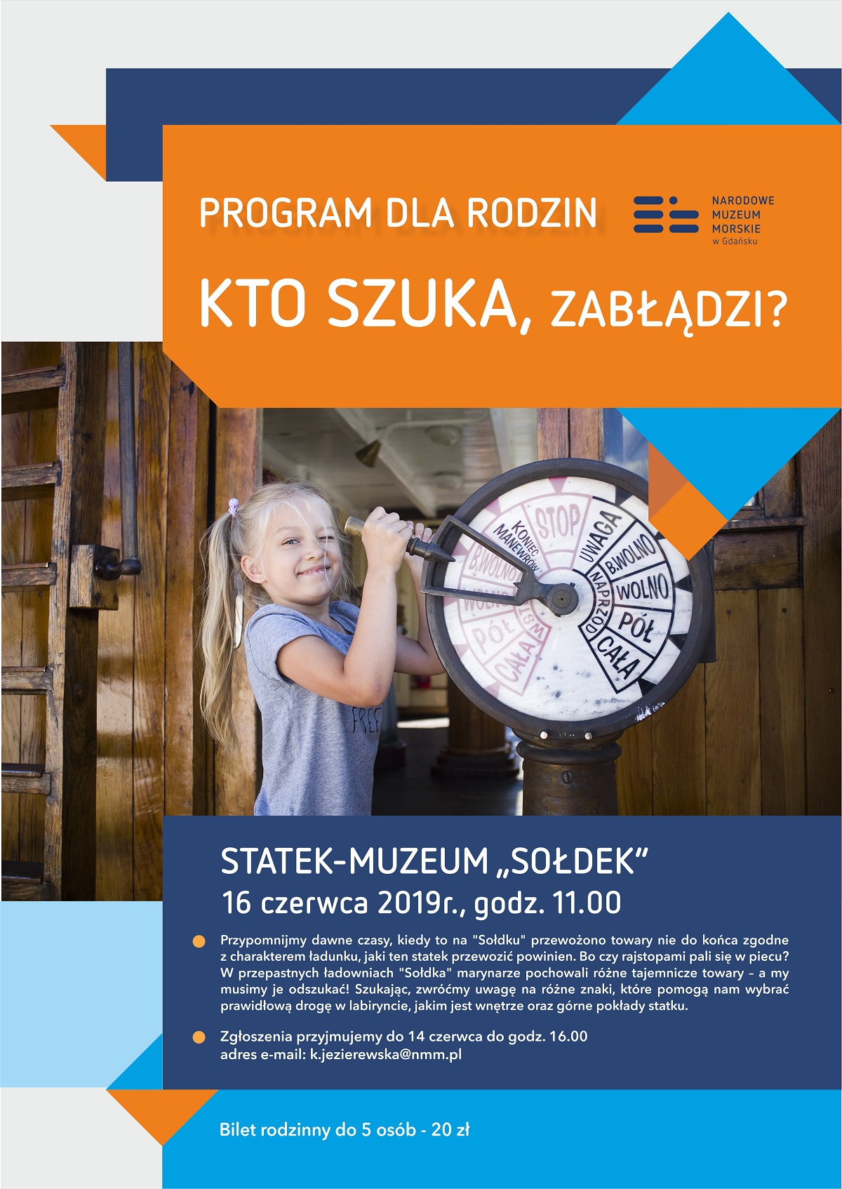 16 czerwca ostatni "Program dla Rodzin" w tym sezonie. Tradycyjnie, w niedzielę, wszyscy chętni spotkają się na statku-muzeum Sołdek.