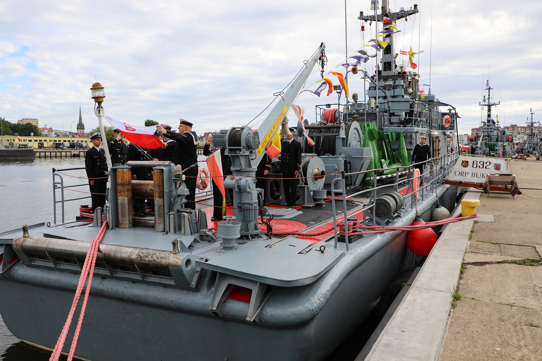 Zgodnie z marynarską tradycją, rocznica pierwszego podniesienia bandery jest najważniejszym dniem w roku dla każdego okrętu i jego załogi. 23 czerwca 1985 roku po raz pierwszy podniesiono biało-czerwoną banderę na ORP Bukowo. Tym samym okręt rozpoczął swoją służbę w Marynarce Wojennej RP. Z tej okazji we wtorek, 23 czerwca, w Porcie Wojennym w Świnoujściu załoga i zaproszeni goście spotkali się na uroczystej zbiórce, a na okręcie podniesiono wielką galę banderową.