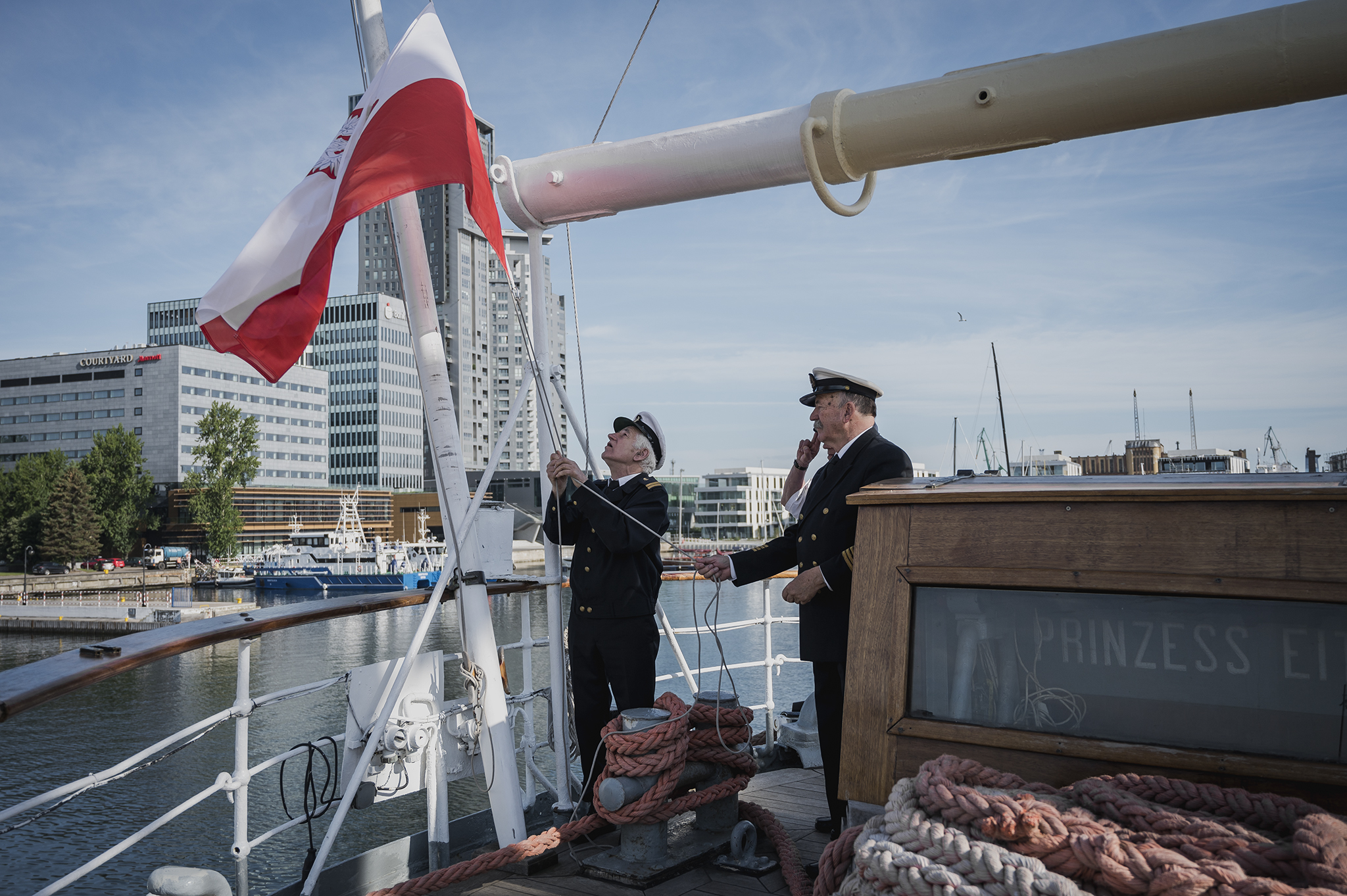 7:55 - uroczyste podniesienie bandery na Darze Pomorza,