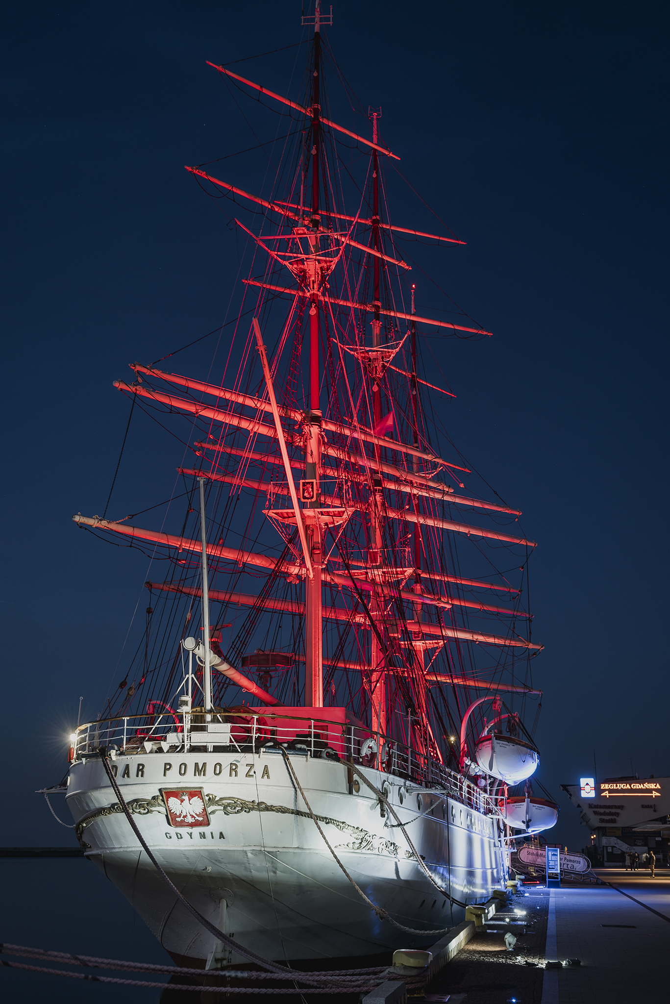 Każdego dnia, po zapadnięciu zmroku będzie można podziwiać Dar Pomorza w niezwykłej iluminacji!