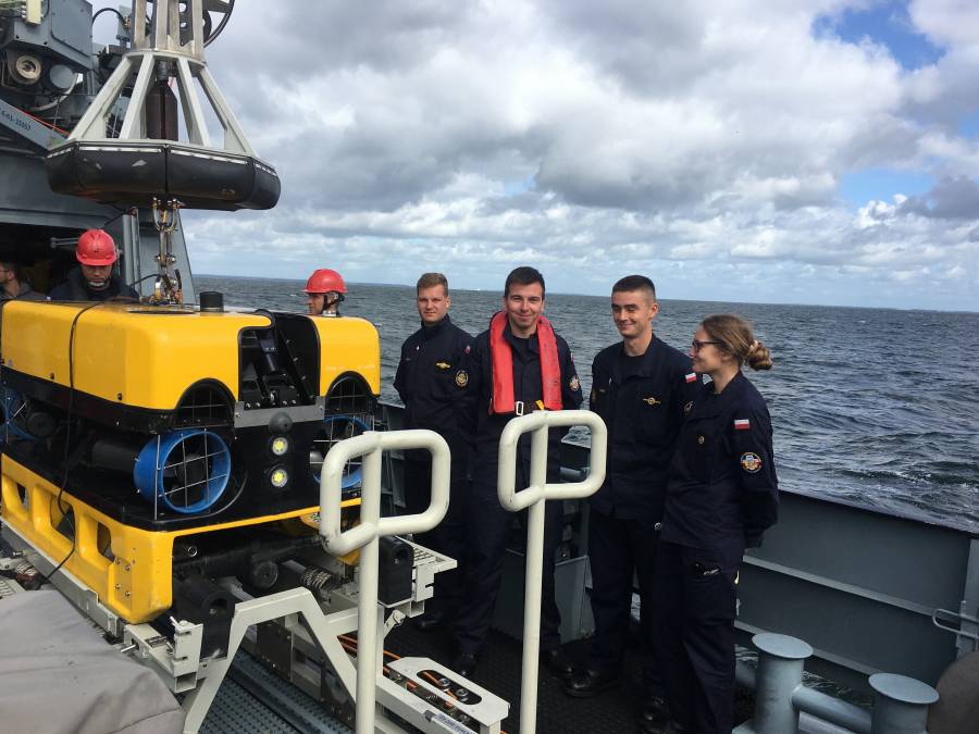 W ostatnich dniach wyszli na morze na niszczycielu min ORP Kormoran, zbudowanym w stoczni Remontowa Shipbuilding SA z grupy Remontowa Holding. Okręt prowadził poszukiwanie obiektów podwodnych za pomocą sonaru okrętowego, a następnie ich identyfikację za pomocą sonaru zamontowanego na pojeździe podwodnym i wizualnie za pomocą kamery z pojazdu. Podchorążowie zapoznali się z najnowszymi technologiami i systemami. Porównywano skuteczność rozpoznania z wykorzystywaniem różnych sensorów, jak również prowadzono integrację systemów.