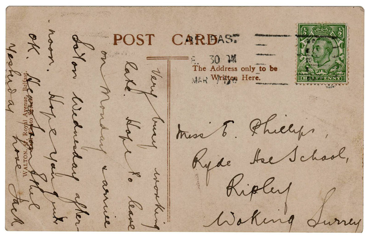 Kartkę ze zdjęciem Titanica Phillips wysłał w marcu 1912 roku do swojej siostry Elsie Phillips.