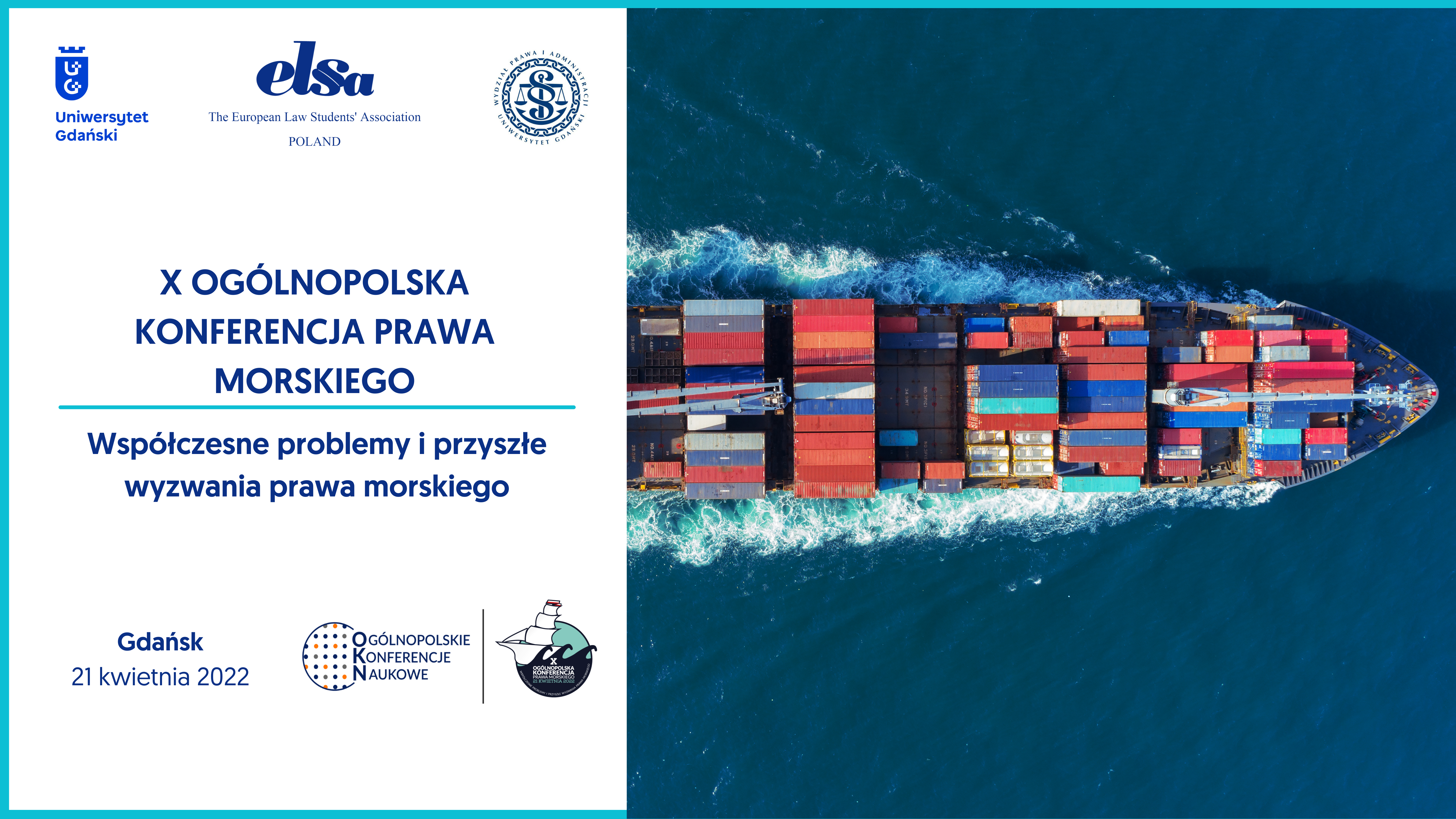 W czwartek, 21 kwietnia 2022 roku odbędzie się zatytułowana „Współczesne problemy i przyszłe wyzwania prawa morskiego” organizowana przez Katedrę Prawa Morskiego WPiA UG oraz Europejskie Stowarzyszenie Studentów Prawa ELSA Gdańsk.