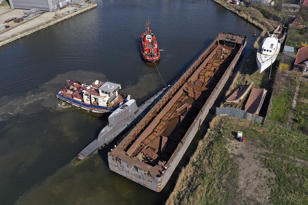 W czwartek, 20 kwietnia w basenie stoczniowym zlokalizowanym w Górkach Zachodnich w Gdańsku, w asyście holownika Słoń i pchacza Nosorożec G-02 zacumował okręt podwodny Kondor. To jednostka typu Kobben, którą w grudniu 2017 roku wycofano ze służby w Marynarce Wojennej.