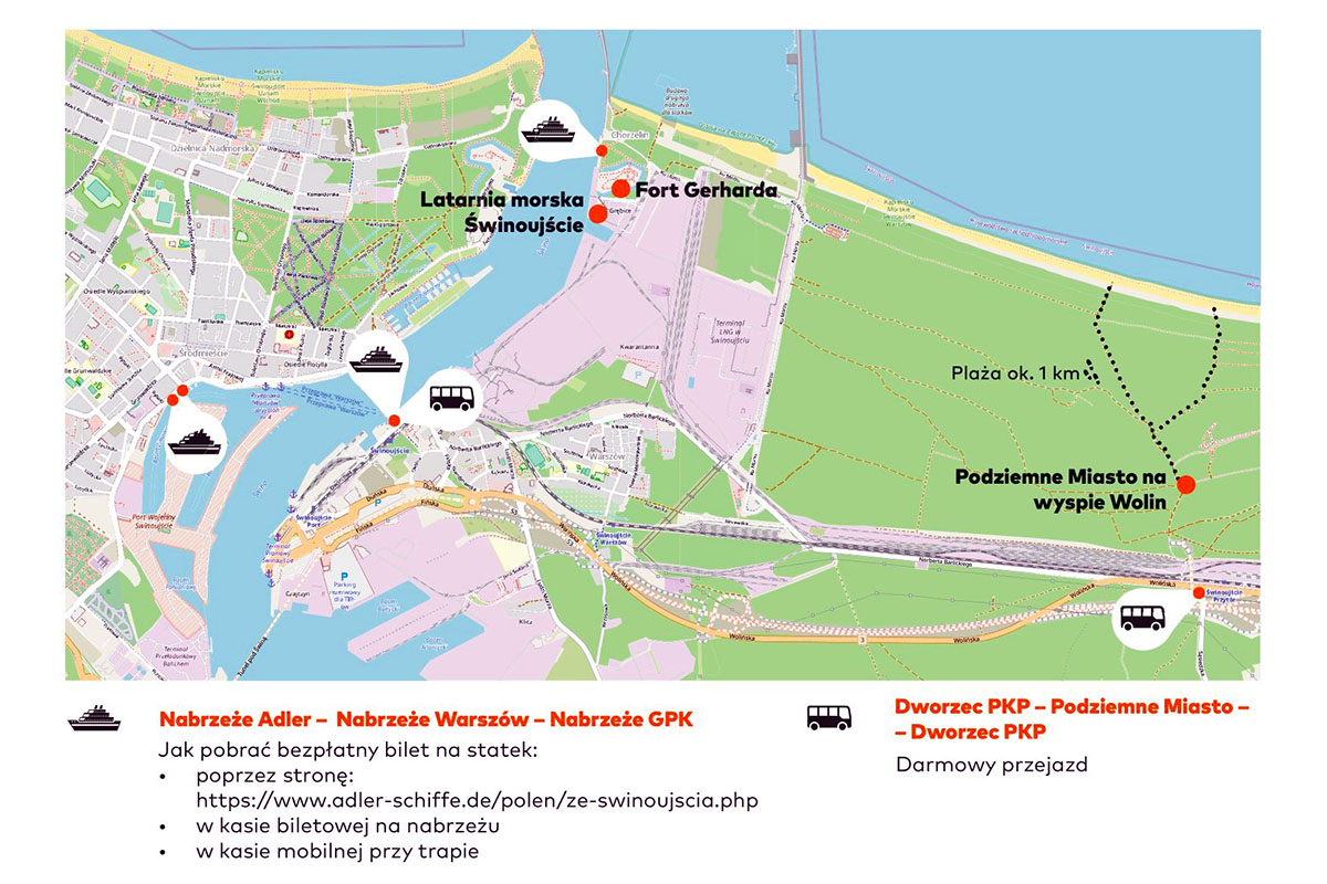 Darmowe bilety na statki można pobrać: poprzez stronę: www.adler-schiffe.de/polen/ze-swinoujscia.phpffe.de/polen/ze-swinoujscia.php, w kasie biletowej na nabrzeżu lub w kasie mobilnej przy trapie.