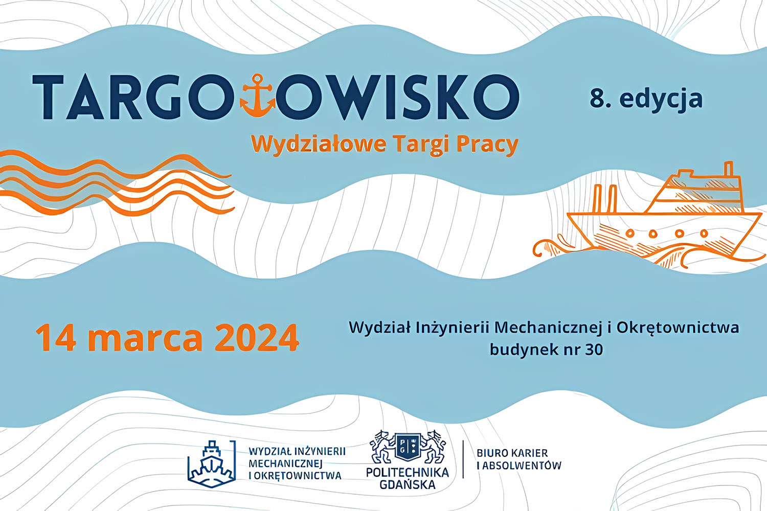 Biuro Karier i Absolwentów oraz Wydział Inżynierii Mechanicznej i Okrętownictwa zapraszają na TargOiOwisko 2024 (OiO - oceanotechnika i okrętownictwo), Wydziałowe Targi Pracy, które odbędą się 14 marca 2024, w godz. 10:00 - 14:00, w budynku Wydziału Inżynierii Mechanicznej i Okrętownictwa (budynek nr 30).