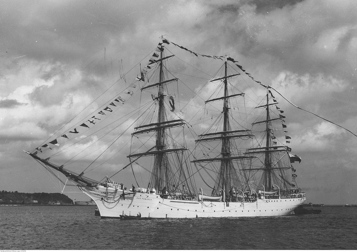 16 września 1934 roku Dar Pomorza, z 106-osobową załogą dowodzoną przez kapitana Konstantego Maciejewicza, wyruszył w historyczny rejs dookoła świata. Początkowo planowano, że wyprawa potrwa 18 miesięcy i obejmie więcej portów, jednak ostatecznie Ministerstwo Przemysłu i Handlu zdecydowało o skróceniu rejsu, zapewniając jednocześnie odpowiednie finansowanie. Dzięki temu żaglowiec spędził na morzu prawie rok.