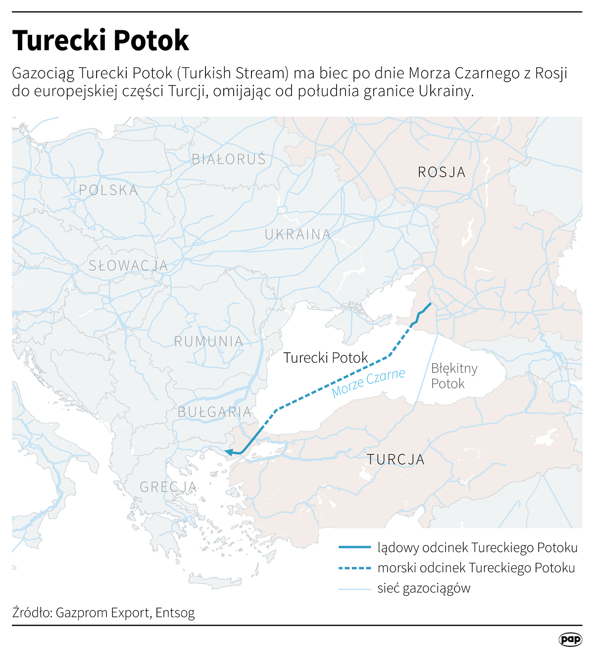 Spółka córka Gazpromu podpisała kontrakt na budowę naziemnej infrastruktury gazociągu Turkish Stream z brytyjską firmą Petrofac. Umowa jest warta 340 mln euro. Uwzględnia budowę naziemnych gazociągów i terminal do odbioru gazu w Turcji. Jego przepustowość ma wynieść 31,5 mld m sześc. rocznie. Ma być gotowy w grudniu 2019 roku. Gaz będzie do niego docierał dzięki pracy tłoczni Anapa w Rosji. Nie wiadomo kiedy ruszy jej budowa.