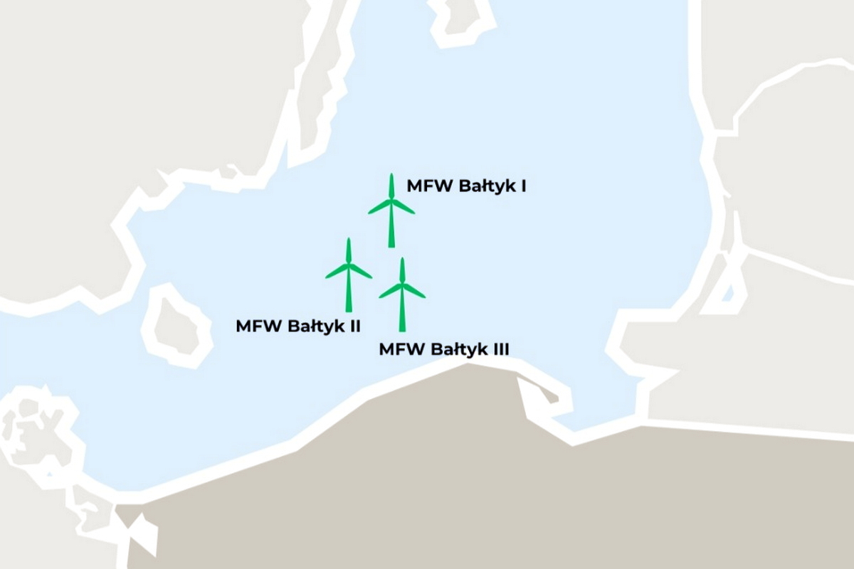- 3000 MW – moc farm wiatrowych na Morzu Bałtyckim w rozwoju