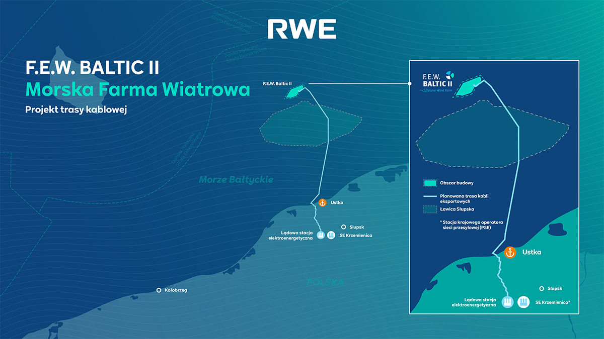 Spółka RWE podała, że wojewoda zachodniopomorski udzielił pozwoleń na budowę morskich turbin wiatrowych wraz z wewnętrzną siecią elektroenergetyczną i telekomunikacyjną oraz morskiej stacji elektroenergetycznej dla morskiej farmy wiatrowej RWE F.E.W. Baltic II.