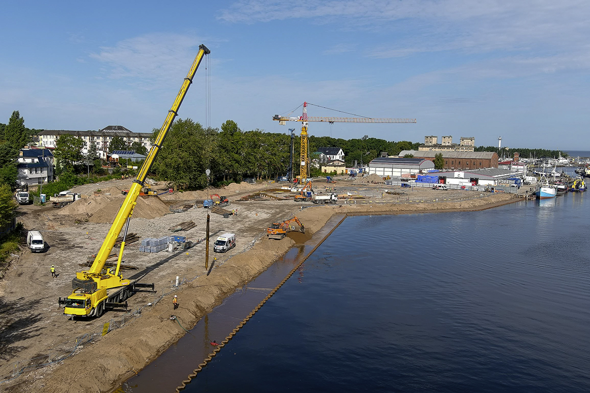 Na placu budowy w usteckim porcie generalny wykonawca zakończył prace rozbiórkowe starego nabrzeża. W miejscu wysłużonej infrastruktury pojawiły się już pierwsze elementy fundamentowe nowej konstrukcji. Korporacja Budowlana DORACO kontynuuje roboty ziemne i dalsze technologiczne prace w obrębie powstającego nabrzeża.