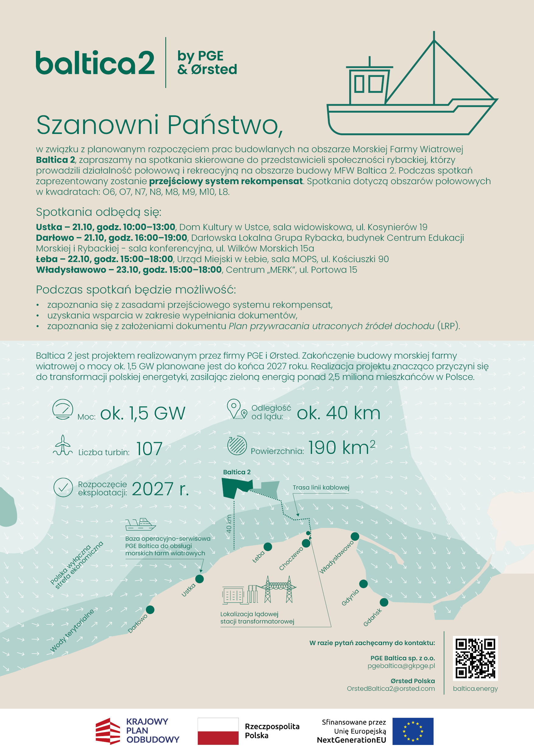 W dniach 21-23 października w miastach portowych Ustka, Łeba, Władysławowo oraz Darłowo odbędą się spotkania. Ich celem będzie zaprezentowanie tymczasowego mechanizmu rekompensat opracowanego w ramach dokumentu Plan Przywracania Utraconych Źródeł Dochodów (Livelihood Restoration Plan- LRP).