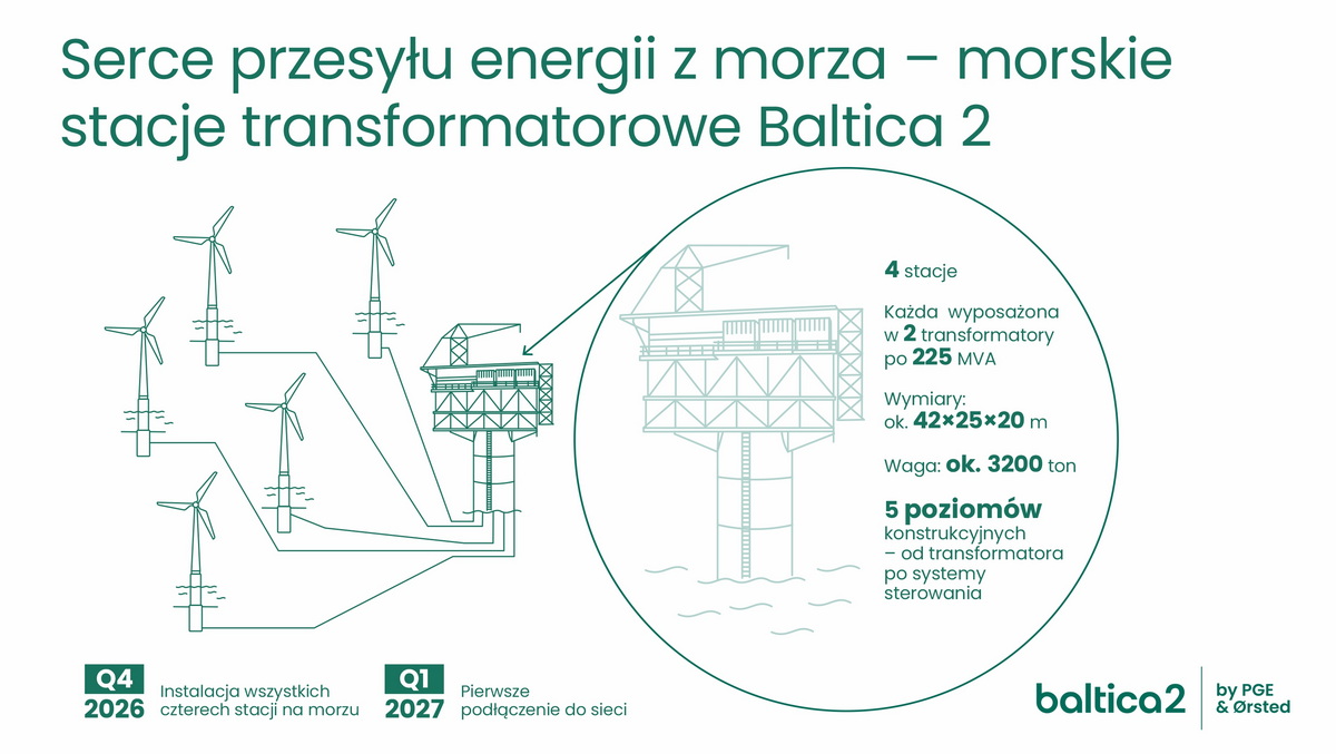 - Morska stacja elektroenergetyczna to tzw. serce farmy wiatrowej. Te olbrzymie konstrukcje mają kluczowe znaczenie dla zapewnienia wydajności morskiej energii wiatrowej, ponieważ umożliwiają przesył energii z turbin, które dla projektu Baltica 2 będą umiejscowione około 40 km od brzegu morza. Instalacja pierwszego transformatora to symboliczny moment pokazujący, że produkcja kolejnych ważnych komponentów dla największej morskiej farmy wiatrowej w Polsce przebiega zgodnie z harmonogramem i najwyższymi standardami bezpieczeństwa – powiedział Ulrik Lange, dyrektor zarządzający projektu Baltica 2 w Ørsted.