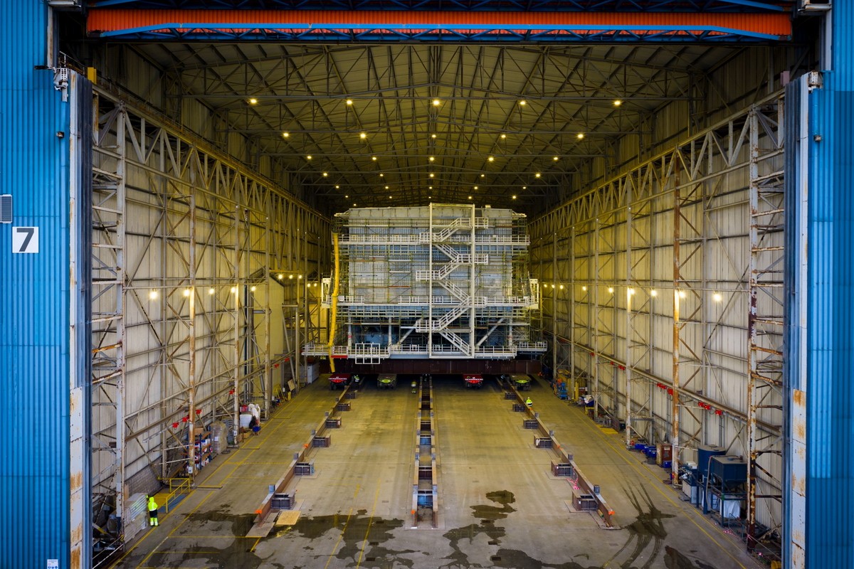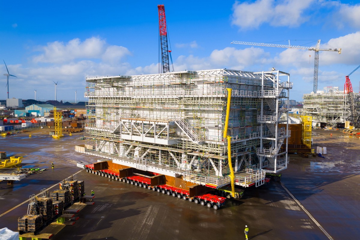 W holenderskim Vlissingen, w zakładach Smulders, tzw. topside, czyli główna część morskiej stacji elektroenergetycznej dla farmy Bałtyk 3, zostało właśnie wyprowadzone z hali produkcyjnej i ustawione na placu zewnętrznym. To konstrukcja o wymiarach 51 × 38 × 43 metry, porównywalnych do wymiarów 15‑piętrowego budynku.