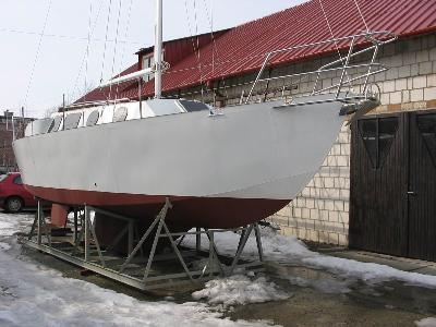 Kadłub stalowy, kilowy. Konstrukcja jest lekka, wręgi z płaskownika co 70cm (stąd długość koi 210 cm), co widać pod kojami i w skrajnikach. Dno kila zakończone 24 mm płytą balastową zabezpieczającą przed ew. kontaktem z dnem, co w żegludze turystycznej jest nieuniknione. Jacht stoi stabilnie na kilu, dodatkowe podpory wskazane.