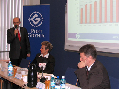 Ponieważ do szerszego omówienia powyższego tematu wrócimy wkrótce, tu tylko zaznaczmy, że w sferze przeładunków rok miniony w porównaniu z poprzednim wypadł nieco gorzej, gdy w tamtym sięgnęły one pułapu prawie rekordowego, wynoszącego ponad 17 milionów ton, tak w roku 2005 spadły do poziomu około 15,5 miliona ton. To skutek - zauważył prezes już w tymże roku pojawiających się oznak kryzysu w gospodarce nie tylko europejskiej. W przeładowanych towarach nadal dominowała drobnica, choć też w mniejszej w odniesieniu do roku 2007 ilości; w ujęciu procentowym spadek wyniósł 7,1. Ale wynik finansowy, biorąc pod uwagę tę sytuację o znamionach kryzysu - wypadł i tak pozytywnie: zysk brutto w wysokości blisko 28 milionów złotych, zaś netto - nieco ponad 27,5 miliona zł. W roku 2007 dane te było o około 10 milionów wyższe. Za to, jak stwierdził wiceprezes Tankiewicz, skala wydatków na inwestycje okazała się - znowu w porównaniu do roku 2007 - imponująca, zamknęła się bowiem kwotą dokładnie 131,85 miliona złotych. Zresztą nawet bez znajomości tych danych, widać wyraźnie, że pod względem nowych inwestycji port gdyński zmierza ku lepszemu, w tempie szybszym niż przed paroma laty.