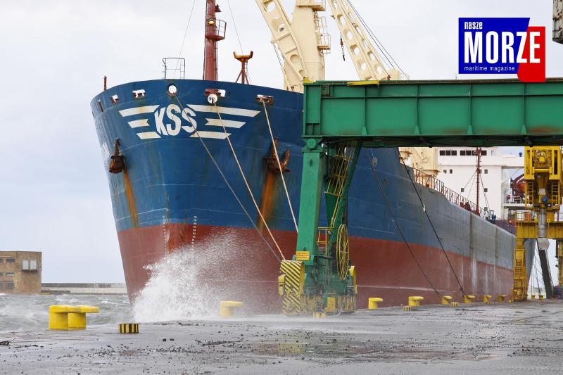 Masowiec przy nabrzeżu Szwedzkim portu Gdynia.