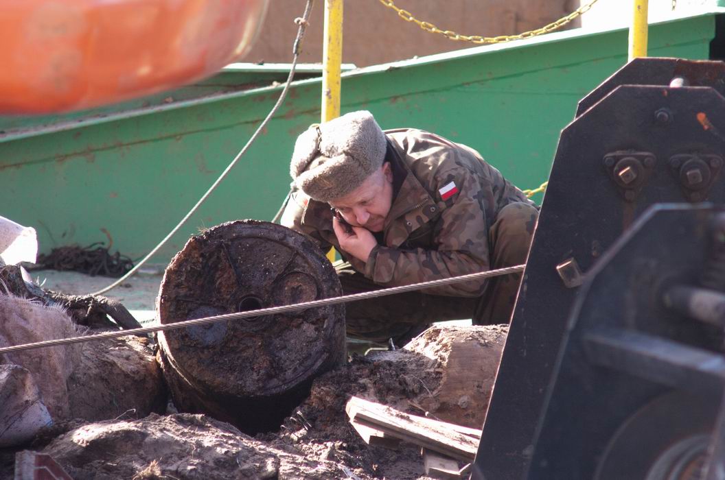 Pracownik, który wyciągnął bombę mówi, że na początku myśleli, że to zwykła, stara beczka. Dopiero kiedy zobaczyli, że wypadają z niej jakieś sprężyny, wezwali policjantów. Ci natychmiast zabezpieczyli teren i wezwali saperów z pobliskiego poligonu.