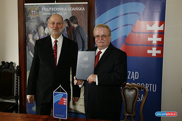 12 kwietnia Prof. dr hab. inż. Henryk Krawczyk, Rektor PG i Jerzy Melaniuk, sprawujący Jednoosobowy Zarząd ZMPG SA podpisali Porozumienie, mające charakter umowy ramowej reaktywującej wzajemne relacje. Jego intencją jest m.in. wsparcie projektów badawczo-rozwojowych realizowanych przez Politechnikę Gdańską na rzecz gdańskiego portu. Równoległym efektem będą zmiany w systemie kształcenia przyszłych, potencjalnych kadr poprzez wprowadzenie do programów edukacyjnych specjalistycznych elementów praktycznej wiedzy z zakresu sektora gospodarki morskiej. Mają temu służyć cykle wykładów prowadzonych na Politechnice Gdańskiej - wspólnie z pracownikami naukowymi - przez pracowników ZMPG, podobnie jak to ma miejsce na Uniwersytecie Gdańskim. Przewiduje się także np. realizację badań geologicznych, hydrologicznych i środowiskowych związanych z planami rozwoju infrastruktury portowej na akwenach Zatoki Gdańskiej, czy opracowanie metod oraz technologii budowy i utrzymania sieci przesyłowych, umacniania dna kanału i basenów portowych, ochrony antykorozyjnej i funkcjonowania wielu innych elementów infrastruktury portowej. Szeroki profil kształcenia PG umożliwi też być może zaprojektowanie koncepcji platformy informatycznej na potrzeby ZMPG SA i działających w obszarze portu firm. Możliwy będzie również powrót do sprawdzonej formuły wizyt studyjnych, czy praktyk zawodowych, realizowanych pod opieką doświadczonych portowców.
