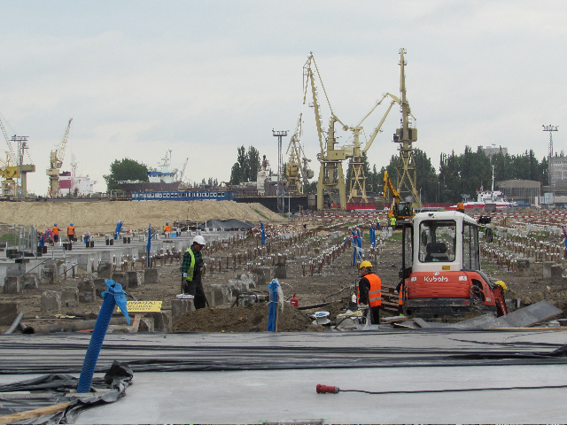 Na wyspę przywieziono – lądem i wodą – 120 tys. m sześc. piasku. Ułożono z niego tzw. nasypy przeciążające. Pionowo w ziemię wbito też specjalne dreny (na głębokość ok. 10 m).