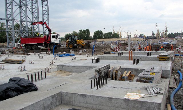 – Skończono już palowanie terenu – mówi Wacław Postoła, kierownik budowy. – Wbito 8,5 tysiąca pali o długości od 15 do 23 m każdy.
