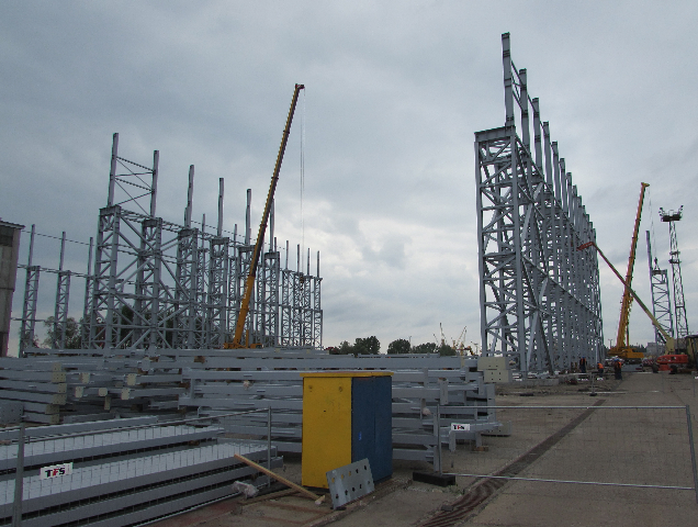– Na razie postawiliśmy ok. 40 słupów hali, po 30 i 41 m wysokości – dodaje Jarosław Trybuchowicz, kierownik projektu. – Wewnątrz będzie siedem dużych suwnic i cały ciąg technologiczny do obróbki blach. Suwnice mają zjeżdżać na wyspę od września br.