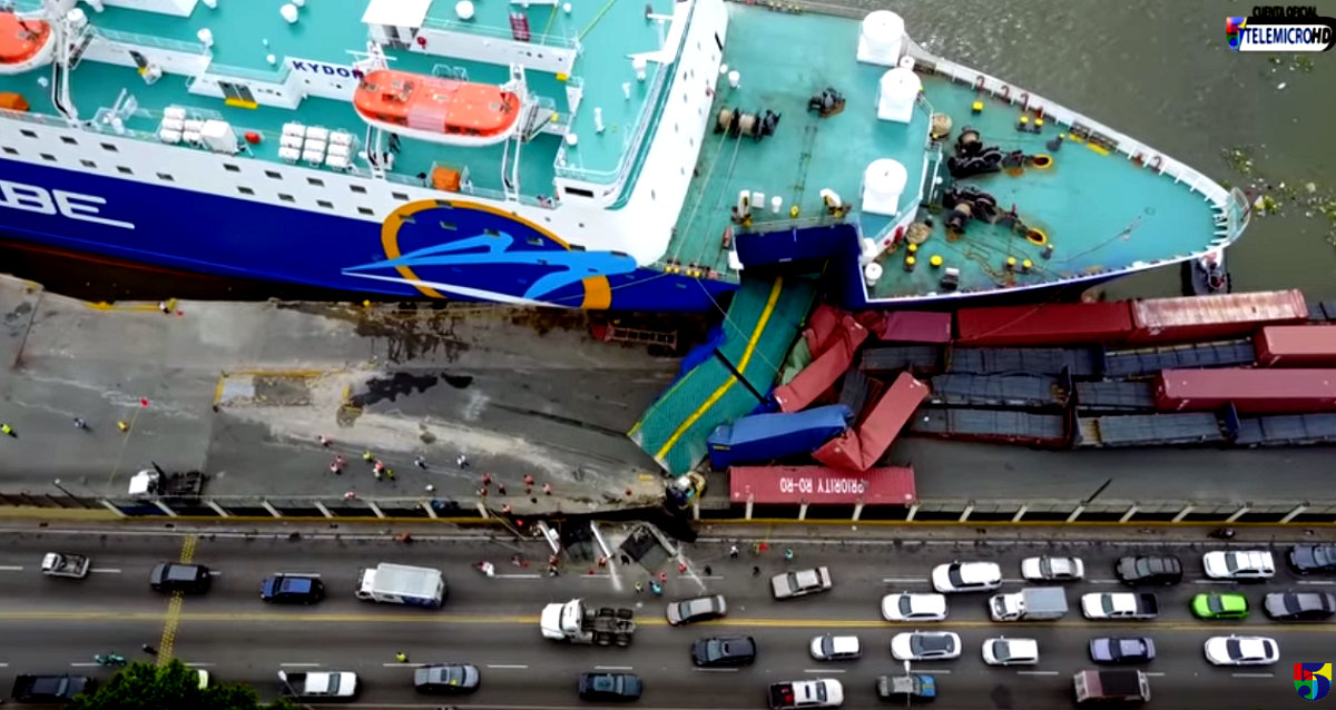 Duże szkody w karaibskim porcie po tym, jak prom uderzył w nabrzeże podczas cumowania.
