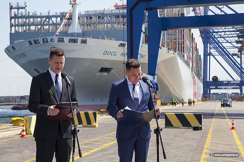 W trakcie uroczystości przemówienia wygłosili m.in. Cameron Thorpe - prezes DCT Gdańsk SA, Alina Mach - country manager OOCL (Poland) Ltd oraz Łukasz Greinke - prezes Zarządu Morskiego Portu Gdańsk SA. - To prawdziwa przyjemność i duma móc przyjąć do największego polskiego portu największy na świecie kontenerowiec. Cieszy nas, że będziemy mogli spotykać go systematycznie - mówi prezes Greinke.