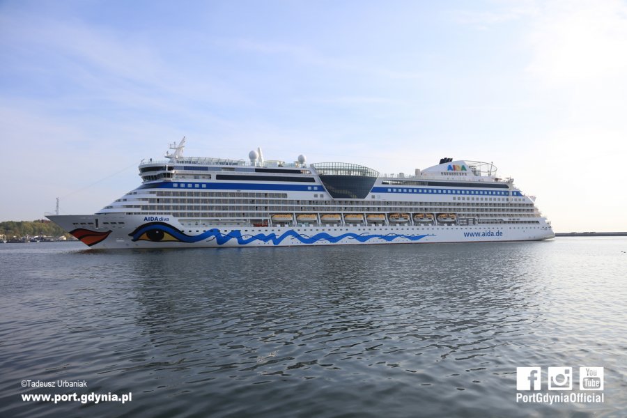 Dzisiaj, w ramach tegorocznego sezonu wycieczkowców, do gdyńskiego portu zawinął statek AIDAdiva. Jednostka w Gdyni pojawi się jeszcze 10 razy.