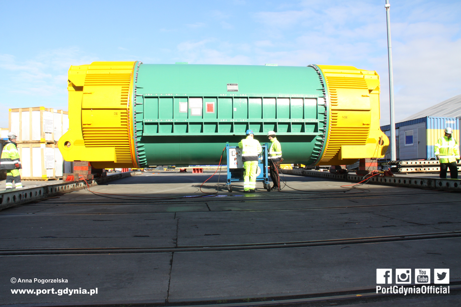 Na plac składowy przy nabrzeżu Stanów Zjednoczonych rozładowano 353-tonowy stojan generatora typu 60WT35S. Został przetransportowany z wrocławskiej fabryki General Electric Power (GE) na teren terminalu OT Port Gdynia specjalistycznym wagonem kolejowym 32-osiowym typu: „Schnabel car”.