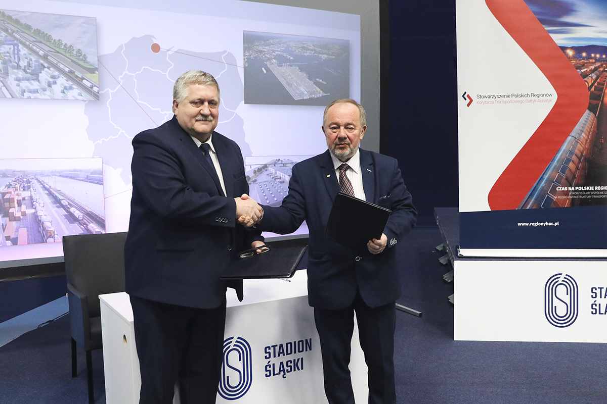 Podpisanie deklaracji o współpracy pomiędzy Stowarzyszeniem Polskich Regionów Korytarza Transportowego Bałtyk-Adriatyk a Porozumieniem operatorów terminali przeładunkowych i centrów logistycznych Europy Środkowo-Wschodniej było częścią drugiego dnia VI Forum Korytarza Transportowego Bałtyk-Adriatyk, które w piątek 6 grudnia, odbywało się na Stadionie Śląskim w Chorzowie.