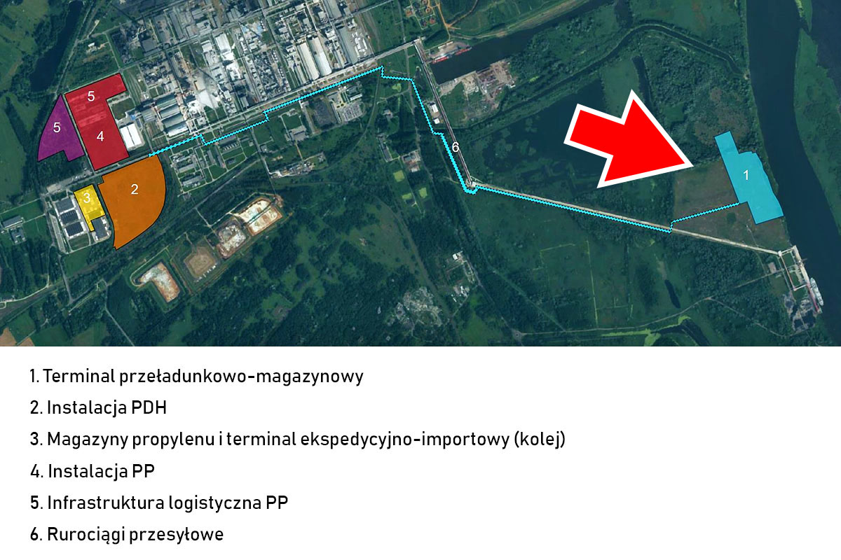 Głównymi obiektami kompleksu chemicznego Polimery Police będą instalacje do produkcji propylenu oraz polipropylenu. Obie instalacje zostały zaprojektowane w oparciu o amerykańskie licencje. Instalacja ma też wytwarzać rocznie 17 tys. ton wodoru, który będzie sprzedawany do zakładów chemicznych w Policach do produkcji amoniaku - dzięki temu spadnie w nich zużycie gazu ziemnego. Elementem instalacji będzie gazoport, zdolny przyjmować statki transportujące do 22 tys. ton propylenu i etylenu. Będzie on mógł być także wykorzystywany do importu LPG.