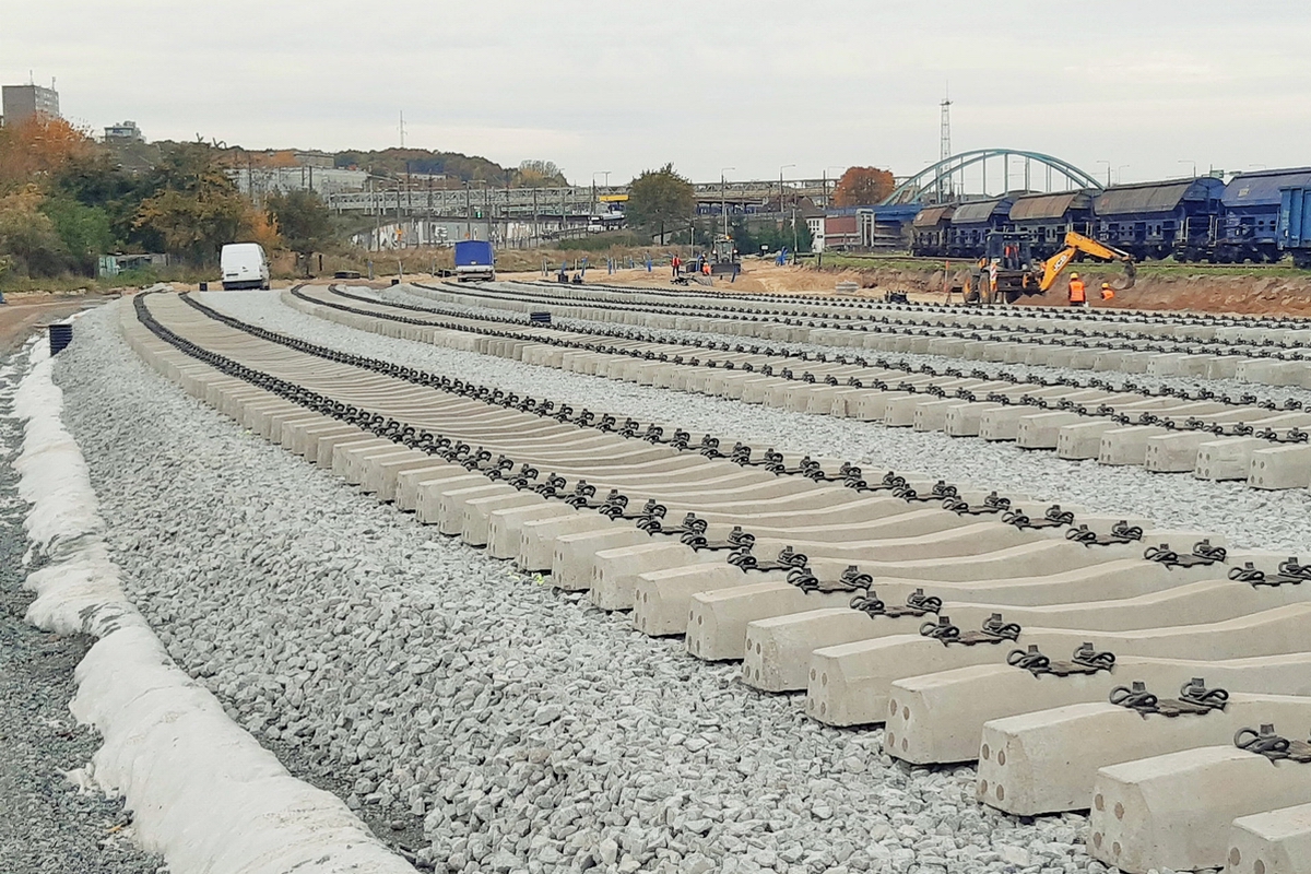 "Wykonany został demontaż starych szyn i podkładów oraz wymiana gruntu i zabudowa betonowych pali. W listopadzie rozpoczęła się budowa nowych torów. Na dojazd do portu zostanie wykorzystane ponad 380 tys. podkładów oraz 230 km szyn. Montowane są konstrukcje wsporcze sieci trakcyjnej" - poinformował w piątek Przemysław Zieliński z zespołu prasowego PKP PLK.