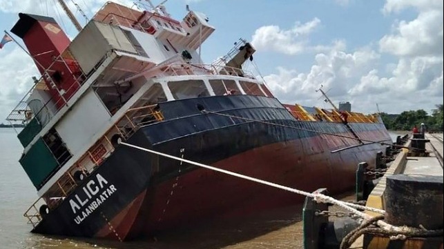 Statek o długości 76 metrów cumował w porcie i miał wypłynąć do Indonezji. W godzinach porannych czasu lokalnego, lewa burta znalazła się pod wodą. Prawdopodobnie dzięki linom cumowniczym statek nie przewrócił się i nie zatonął.