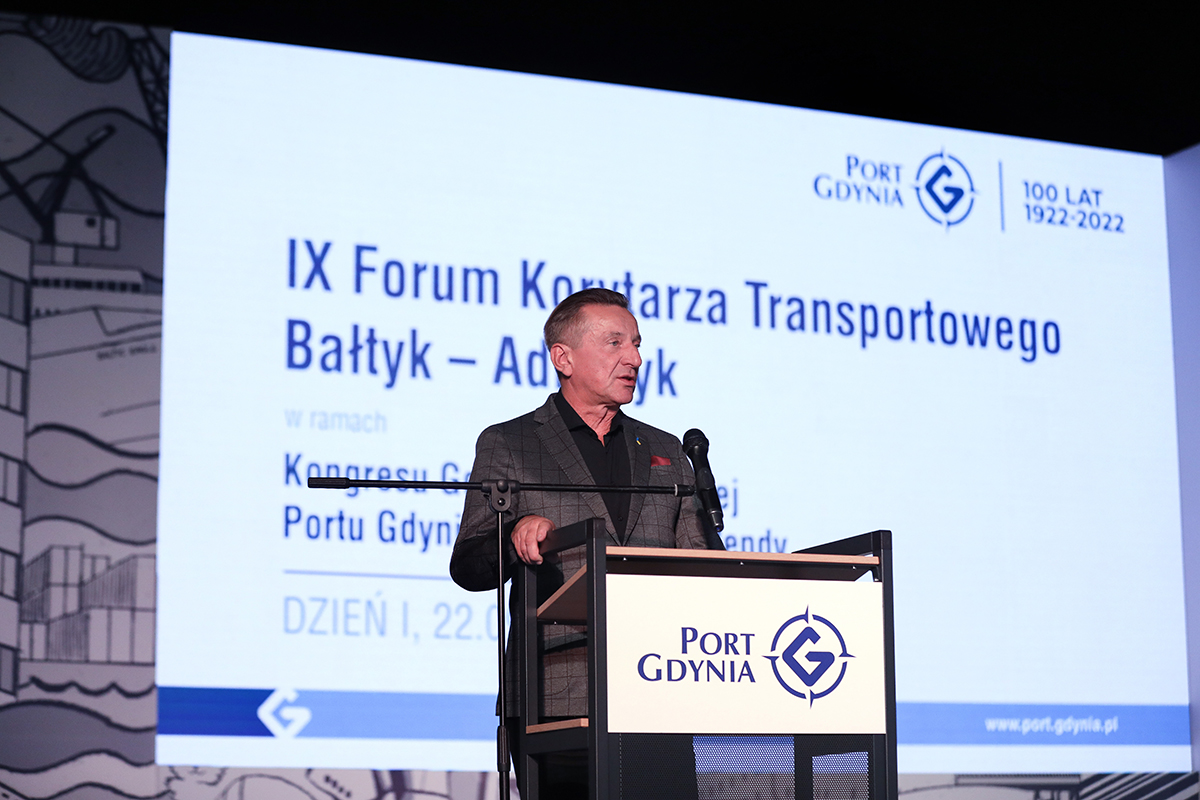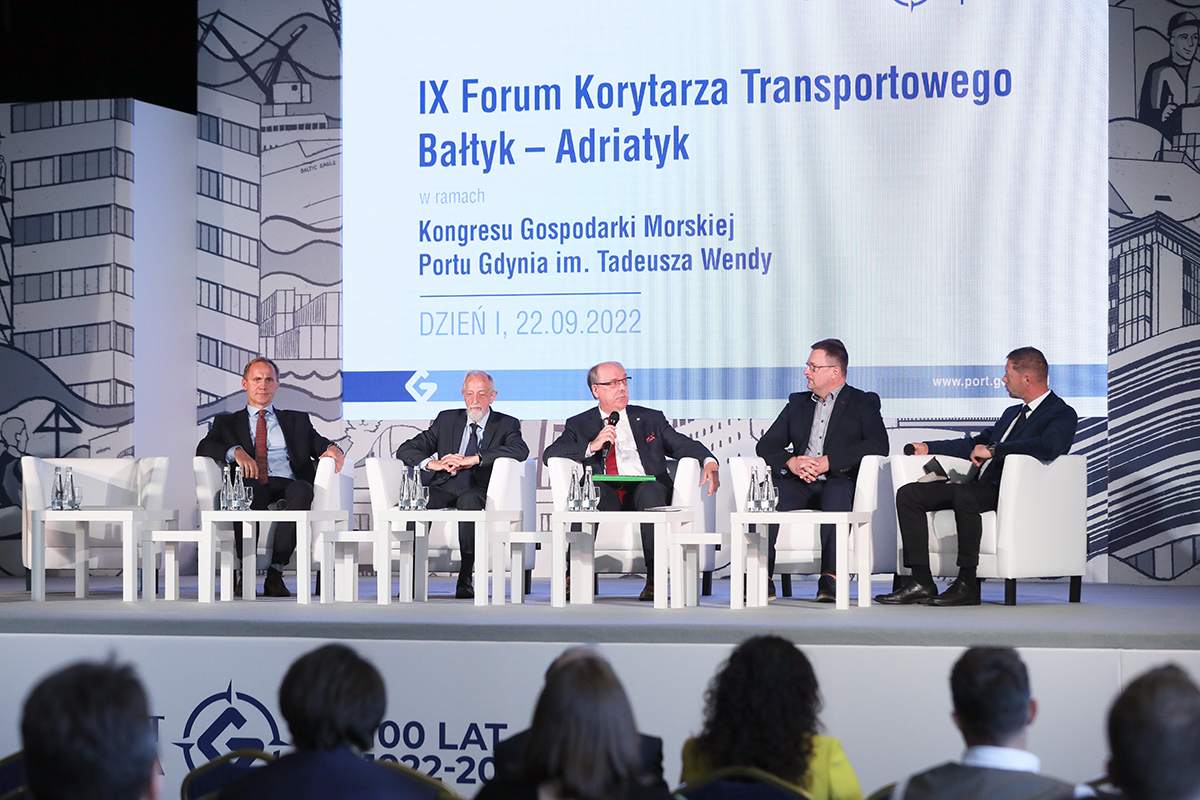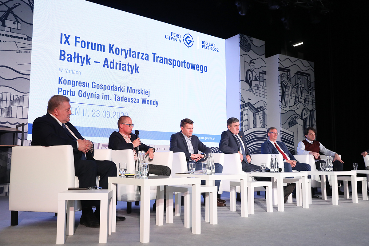 W dniach 22-23 września 2022 r. w sali koncertowej Zarządu Morskiego Portu Gdynia odbyło się IX Forum Korytarza Transportowego Bałtyk – Adriatyk. Tegoroczne Forum zorganizowane zostało w ramach Kongresu Gospodarki Morskiej Portu Gdynia im. Tadeusza Wendy i jak co roku, była to okazja do spotkania branży logistycznej, portowej i morskiej z przedstawicielami polskich regionów położonych wzdłuż korytarza transportowego Bałtyk – Adriatyk.
