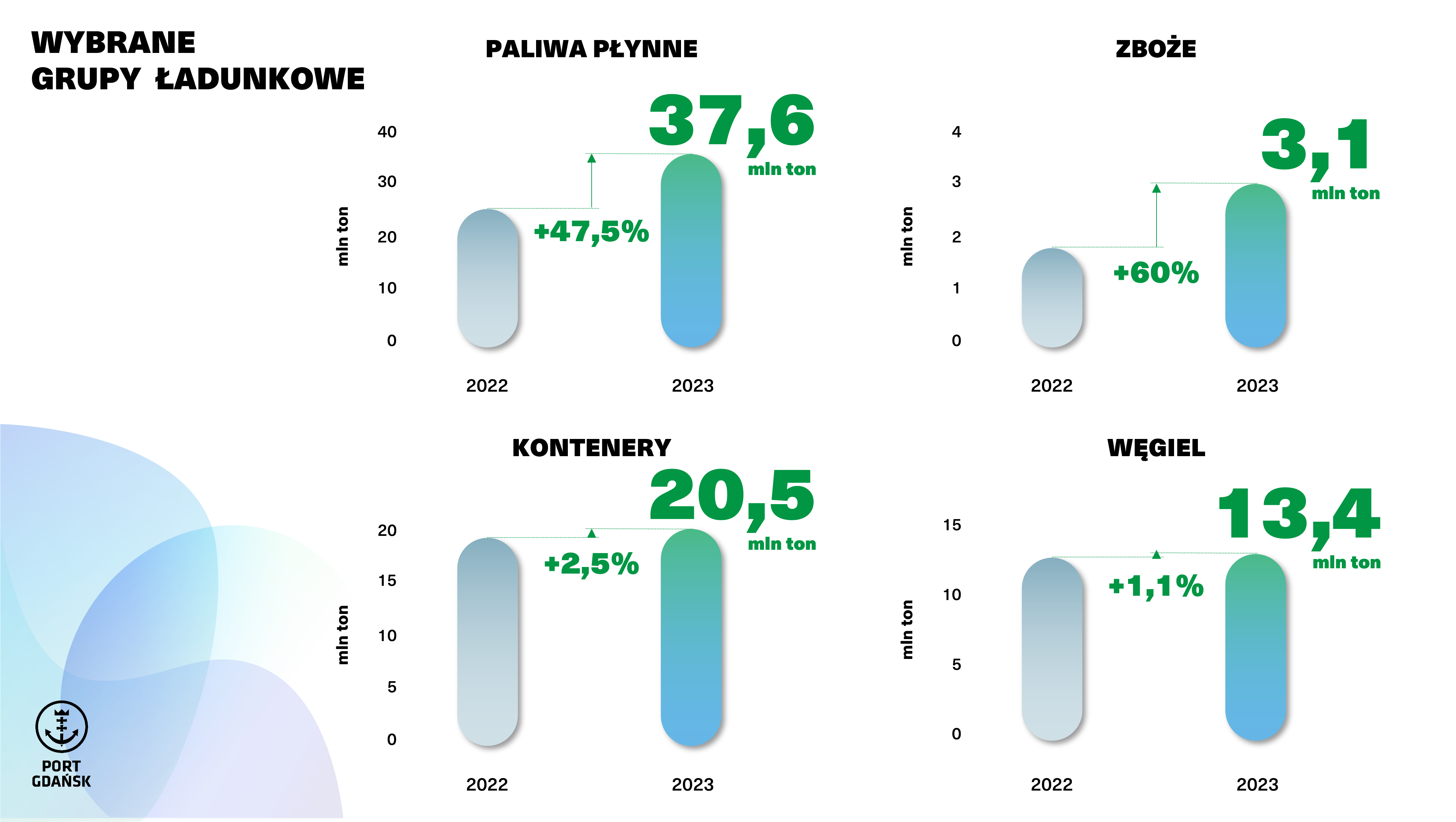 Rekordowe przeładunki oznaczają rekordowe wyniki finansowe. ZMPG S.A. za 2023 r. zanotował zysk netto na poziomie 224,4 mln zł. Dla porównania, w 2021 r. zysk był ponad trzykrotnie niższy (wynosił 65 mln zł).
