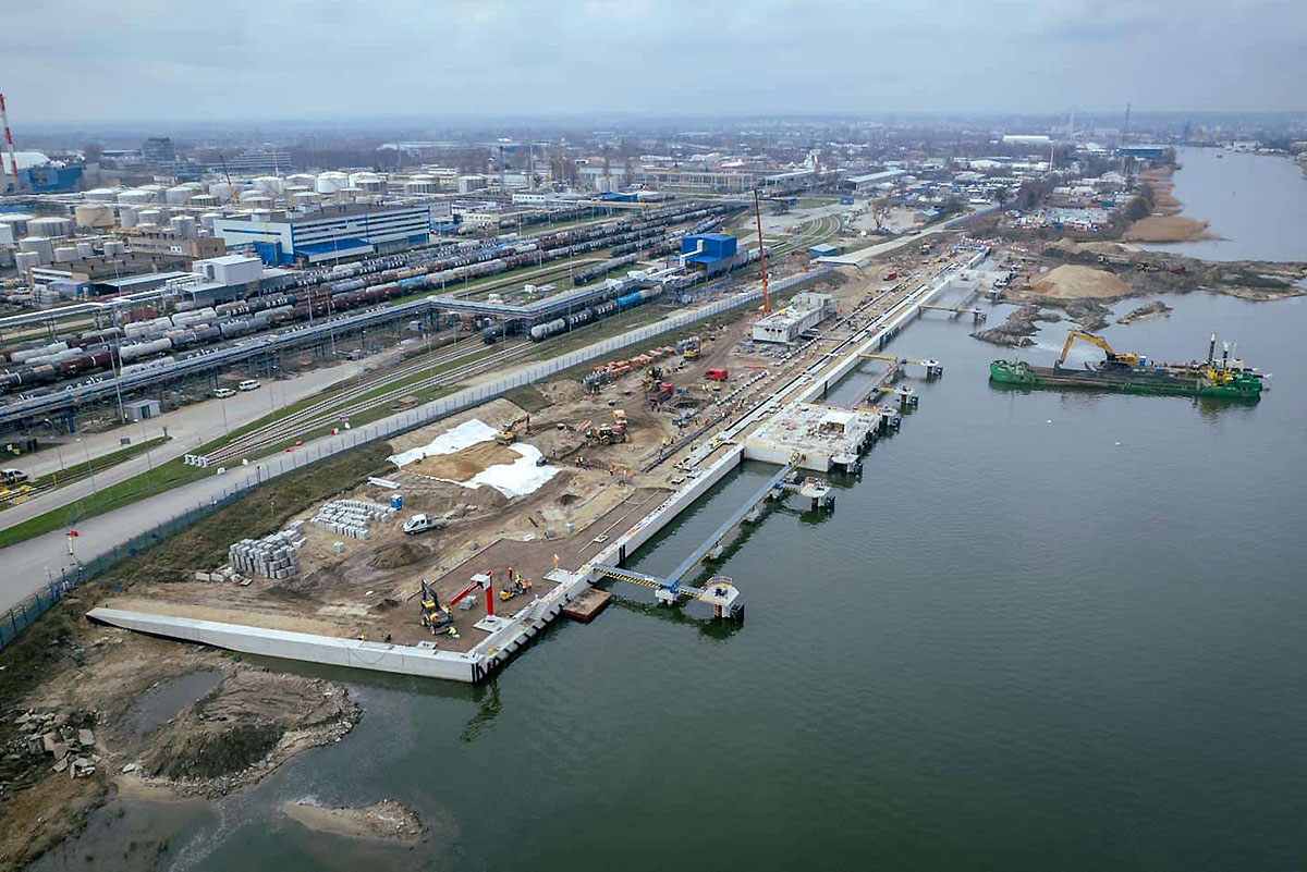 Jeżeli wszystko pójdzie zgodnie z planem, ekipa będzie mogła przystąpić do rozruchów terminala. Budowa ma zakończyć się na początku 2025 roku. Inwestorem budowy jest Grupa ORLEN. Projekt realizuje konsorcjum, w skład którego wchodzą spółki z sopockiej Grupy NDI. Terminal umożliwi przeładunek ponad miliona ton produktów, w tym olejów bazowych czy paliw żeglugowych. Odciąży też funkcjonującą na terenie zakładu bocznicę kolejową, gdzie do tej pory odbywa się transport produktów między rafinerią a zewnętrznymi punktami przeładunkowymi. Generalny wykonawca działa w tzw. formule "pod klucz".