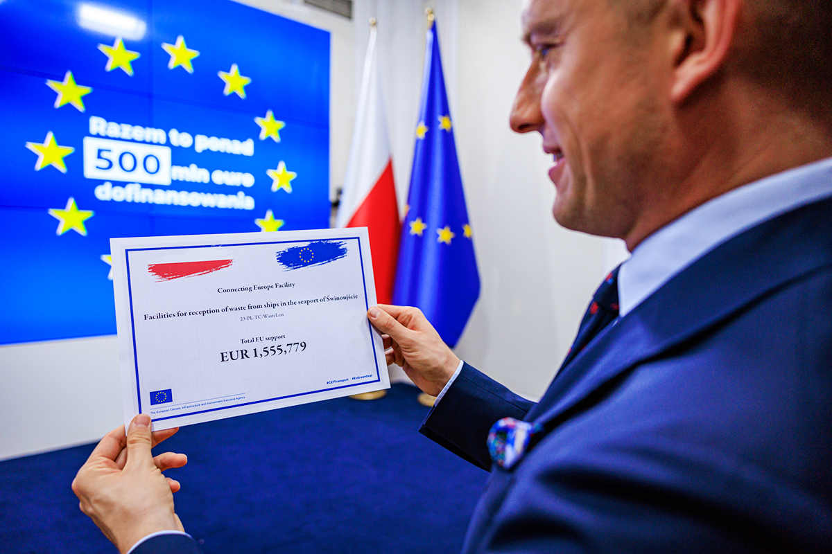 - Zarząd Morskich Portów Szczecin i Świnoujście na projekt Rozwój infrastruktury portowej do odbioru odpadów ze statków w porcie morskim Świnoujście; wartość dofinansowania to 1,56 mln euro.