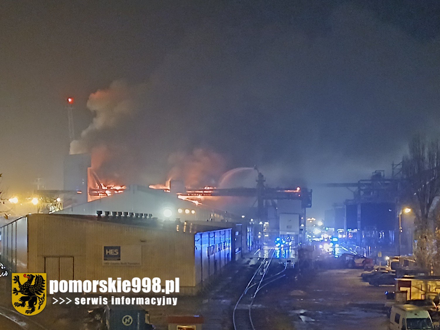 Około północy wybuchł pożar na terenie gdyńskiego portu, przy ul. Węglowej 4a. Jak poinformowały służby, w ogniu stanął taśmociąg nad jednym z magazynów, w którym składowana jest śruta sojowa.
