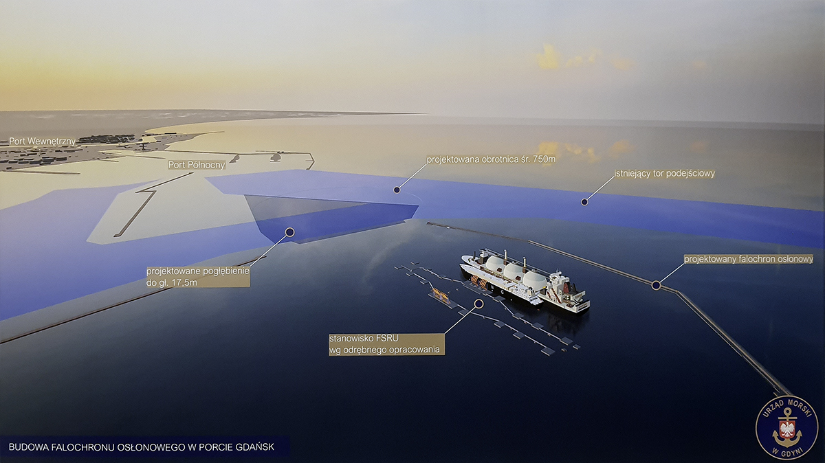 W poniedziałek 17 marca br., w Kapitanacie Portu Północnego w Gdańsku podpisano umowę na budowę falochronu osłonowego w Porcie Gdańsk. Inwestycja, której wartość szacuje się na 800 mln zł, będzie służyć terminalowi gazowemu FSRU, który powstanie w Zatoce Gdańskiej.