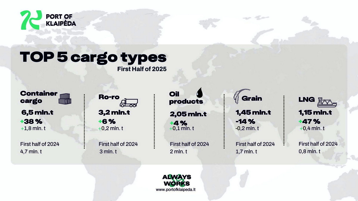 Wśród krajów bałtyckich (Litwa, Łotwa, Estonia) najlepiej wypadł port w Kłajpedzie, osiągając najwyższy wzrost na poziomie 16 proc., zwiększając także swój udział w rynku: jedyny port morski Litwy posiada obecnie 40,8 proc. rynku krajów nadbałtyckich, w porównaniu z 37,1 proc. rok temu. Większość sąsiadów Litwy zanotowała spadki. Dla porównania – port w Rydze o 9 proc., Liepāja (Lipawa) – o 7 proc., a terminal w Būtingė (Butynga) – o 1 proc. Jedynie Ventspils (Windawa) (+15 proc.) i Tallinn (+3 proc.) odnotowały wzrosty, choć na mniejszą skalę, niż litewski port.