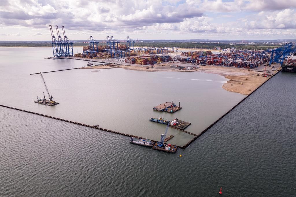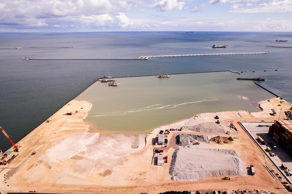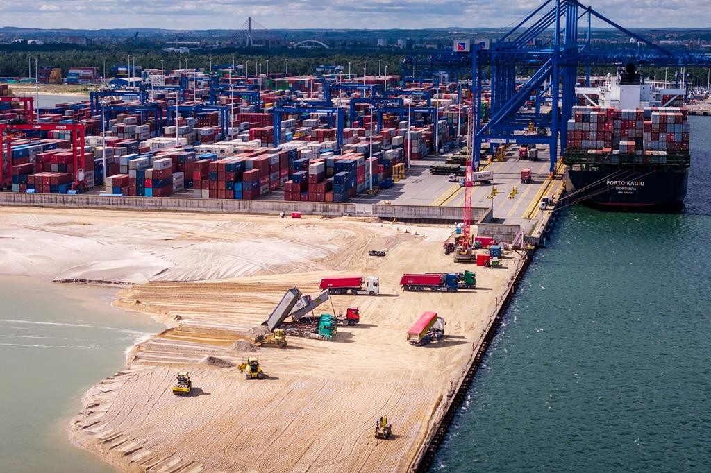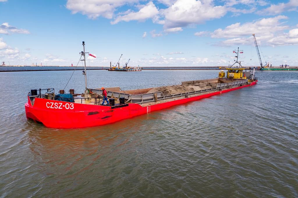 Codzienne dostawy ogromnych ilości piasku z lądu i morza, nawet do 30 tys. m³. Intensywne prace na wszystkich frontach, nowe nabrzeża i platformy. Tak wygląda obecnie budowa terminala T5 na terenie Baltic Hub. Mimo niesprzyjającej pogody w okresie wakacyjnym inwestycja przebiega zgodnie z planem, a wkrótce rozpocznie się realizacja kluczowych elementów - informuje generalny wykonawca Grupa NDI.