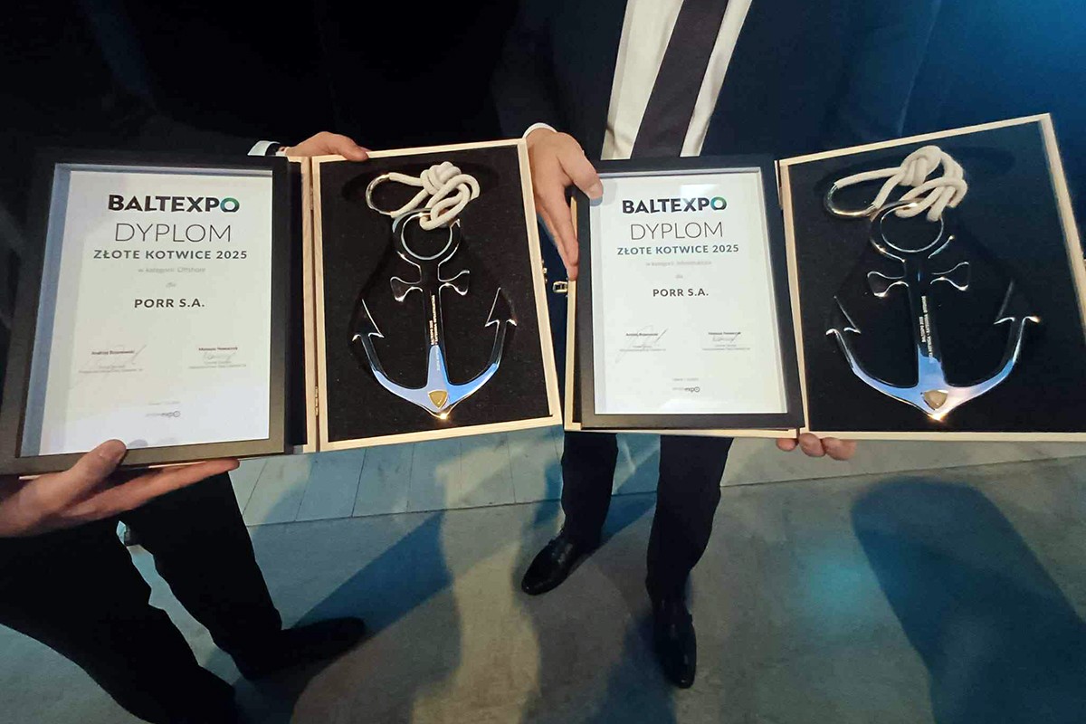 - Złote Kotwice na BALTEXPO 2025 – za rozbudowę części morskiej terminalu regazyfikacyjnego w Świnoujściu – oraz Offshore – za budowę Terminala Instalacyjnego Morskich Farm Wiatrowych – to ogromne wyróżnienie i potwierdzenie wysokiej jakości pracy zespołu PORR - powiedział Piotr Kledzik, Prezes Zarządu PORR S.A. - Jesteśmy dumni z tego, że nasze projekty przyczyniają się do rozwoju polskiej infrastruktury morskiej i bezpieczeństwa energetycznego kraju. Szczególnie cieszy nas doskonała współpraca z Zarządem Morskich Portów Szczecin i Świnoujście, który jest wymagającym, ale niezwykle partnerskim i profesjonalnym klientem. Ta nagroda motywuje nas do dalszego podnoszenia standardów i realizacji ambitnych inwestycji, które kształtują przyszłość polskiego sektora morskiego i offshore - podkreśla.