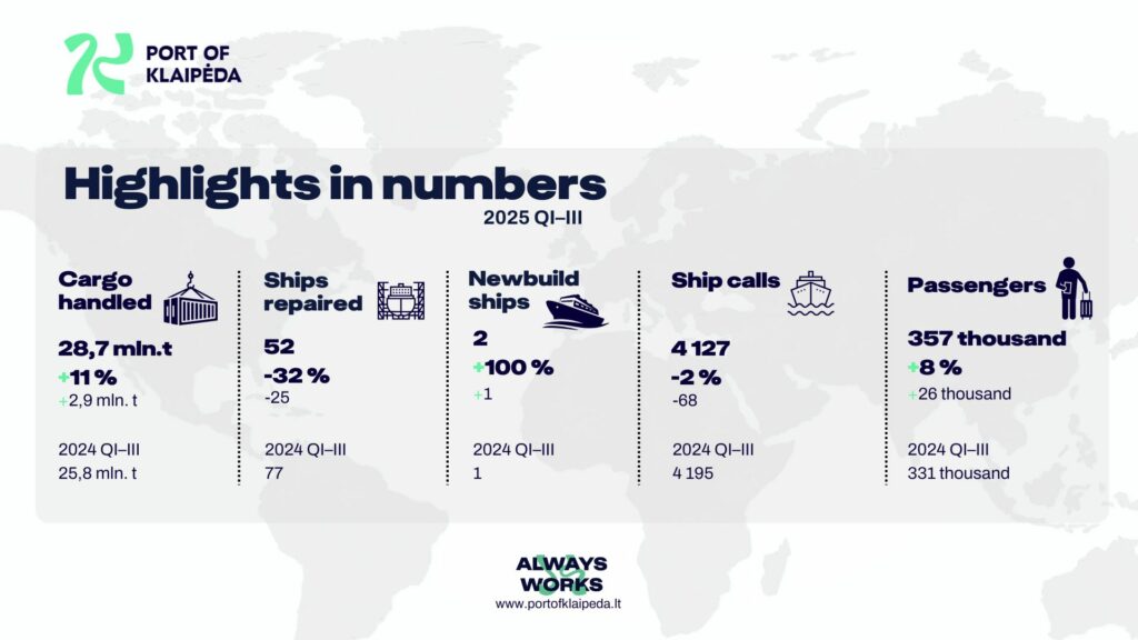 Liczba pasażerów podróżujących przez port w Kłajpedzie wzrosła w tym roku o 8 proc. w porównaniu z rokiem ubiegłym – o 26 395 osób więcej przybyło lub wyjechało drogą morską. Liczba pasażerów rejsów wycieczkowych również wzrosła o 12 proc.