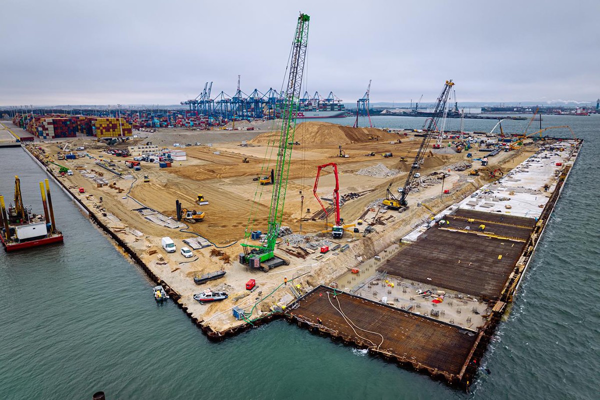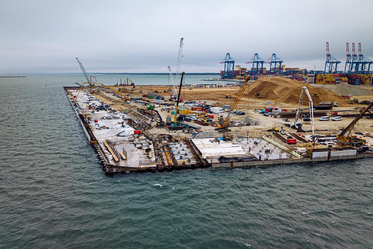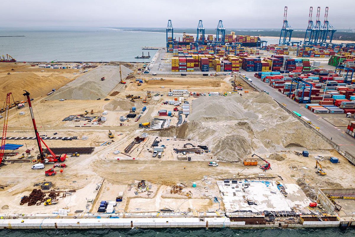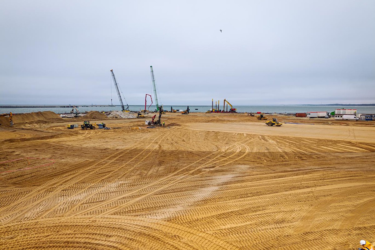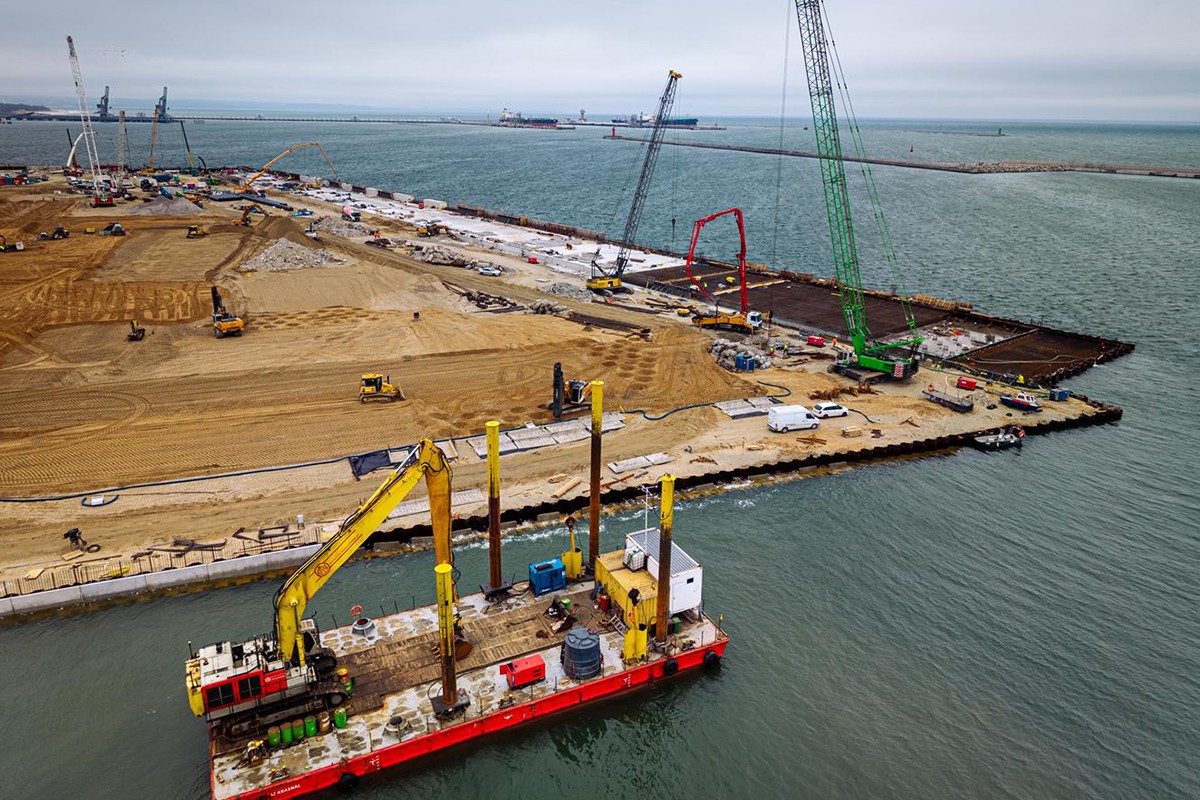 W ostatnich miesiącach wznowiono roboty żelbetowe, drogowe i ziemne oraz rozpoczęto prace instalacyjne. Dzięki zwiększonej mobilizacji zespołów możliwe było przejście do kolejnych etapów realizacji. Aktualnie na nabrzeżu outbound prowadzone są zaawansowane prace związane z budową konstrukcji przyszłego nabrzeża. Obejmują one wykonanie płyt fundamentowych oraz oczepów, które stanowią kluczowy element nadbudowy i będą w przyszłości wykorzystywane do cumowania jednostek pływających.