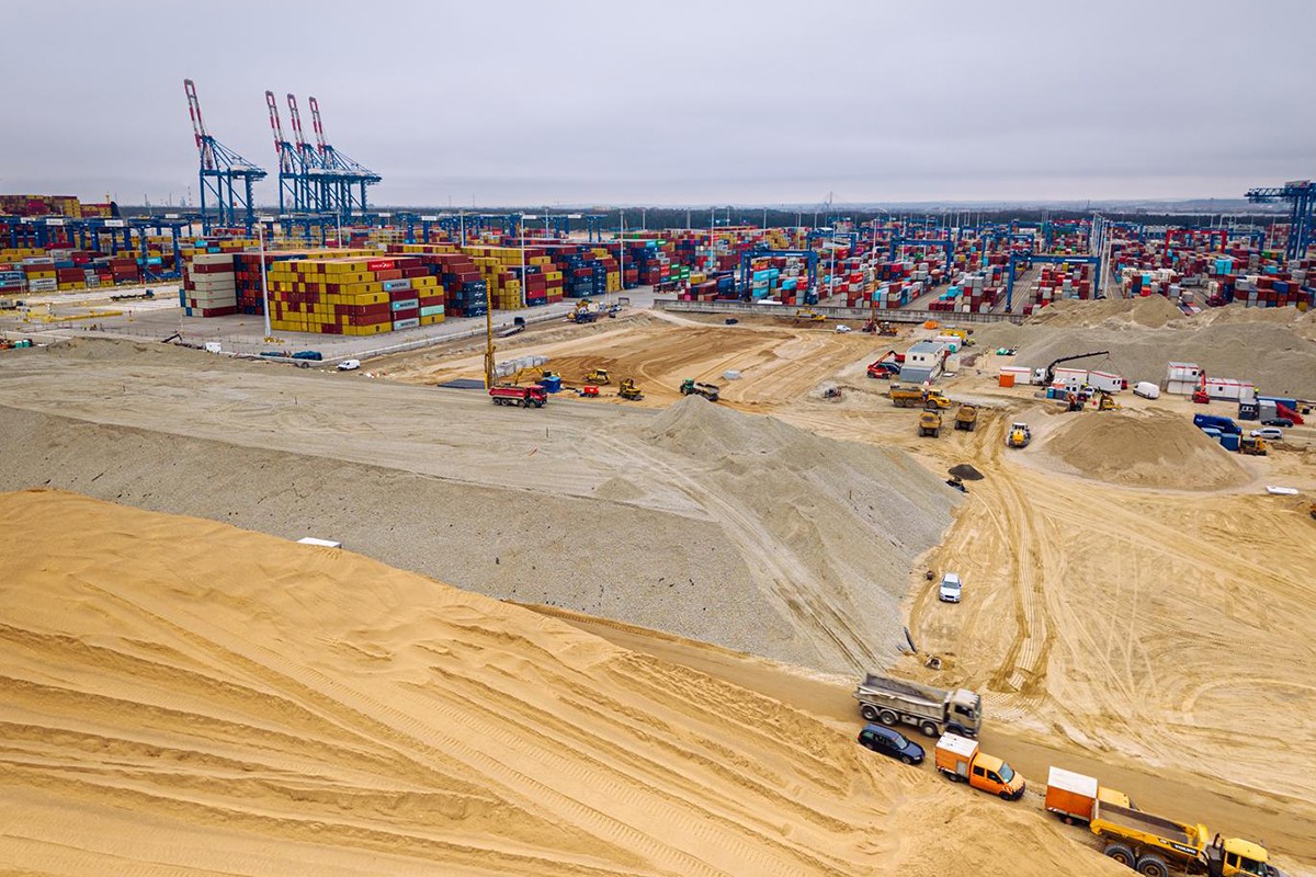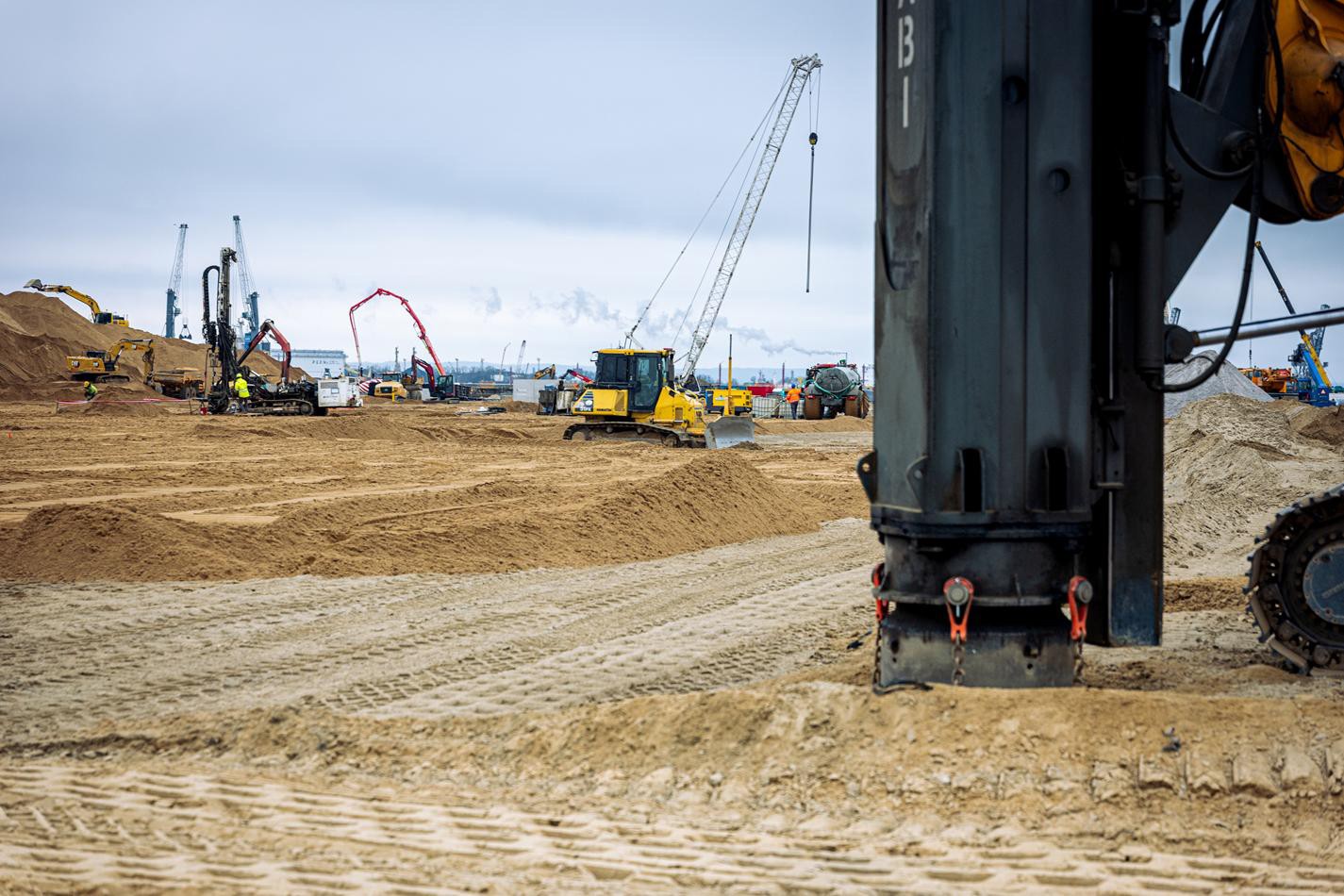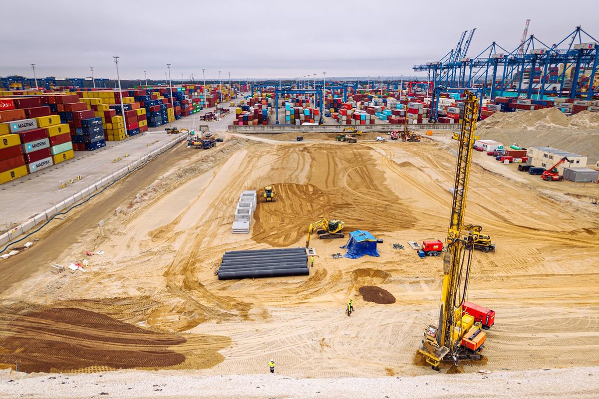 – Odebraliśmy około 4000 ton stali zbrojeniowej w blisko 180 dostawach i przygotowaliśmy fronty na żelbety w zakresach nabrzeży outbound, inbound, temporary i ro-ro. Zakończyliśmy na tych zakresach wszystkie pale CFA i przeszliśmy z realizacją pali pod belkę podsuwnicową od strony lądu. Aktualnie jesteśmy w trakcie przeniesienia zaplecza kontenerowego, aby otworzyć kolejne fronty pod kolumny żwirowe – podkreśla Mateusz Szwaba, inżynier budowy z Grupy NDI.