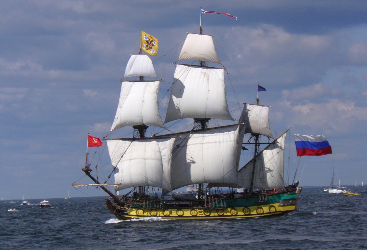Zbudowany w 1999 roku trójmasztowy statek o długości 34 m, będący wierną repliką fregaty cara Piotra Wielkiego, nie został wcześniej wpuszczony do portu w Breście, gdzie na początku lipca miał brać udział w festiwalu morskim.